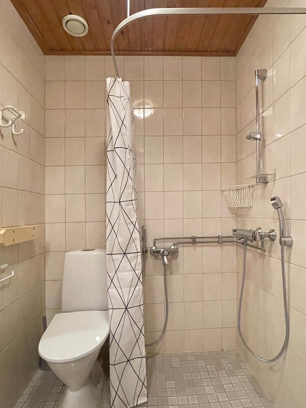 | WC-tilojen kuvaus | Pinnat ja varusteet: Lattia: Klinkkeri // Seinät: Kaakeli // Katto: Paneeli Varusteet: - suihku - bideesuihku - wc-istuin - lattialämmitys |