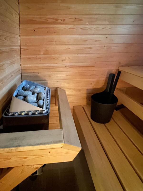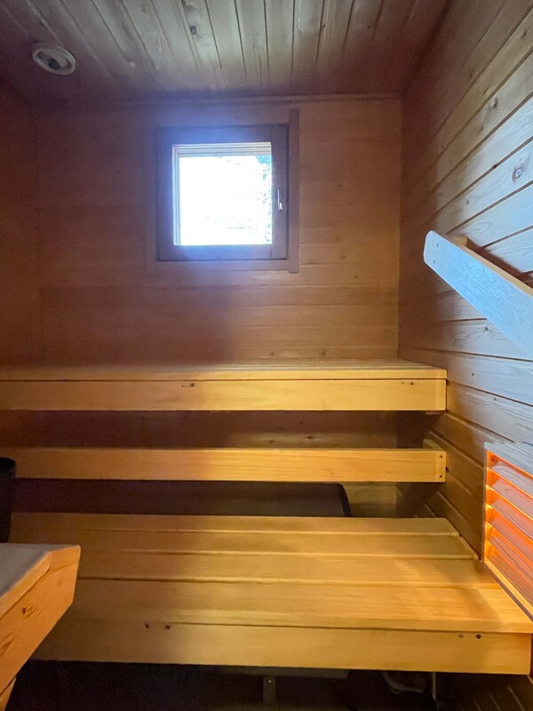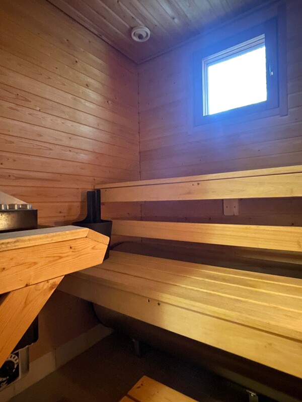 | Saunan kuvaus | Pinnat ja varusteet: Lattia: Klinkkeri // Seinät: Levy // Katto: Paneeli Varusteet: - vesimittari - lauteet - sähkökiuas - yläikkuna - lämminvesivaraaja (lauteiden alla) |